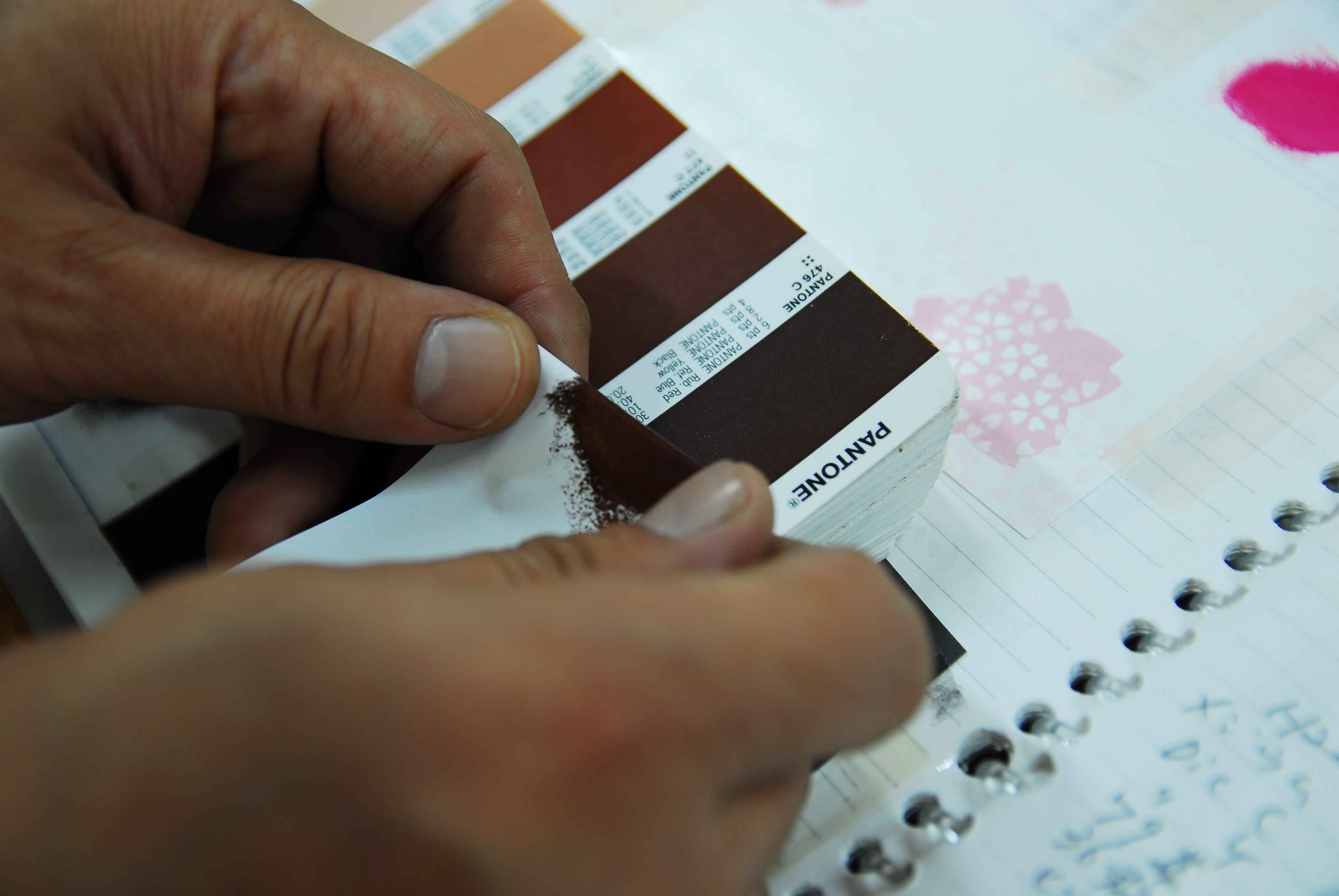 そのひとつの仕事が、こちら特色インクの調合・色合わせです。