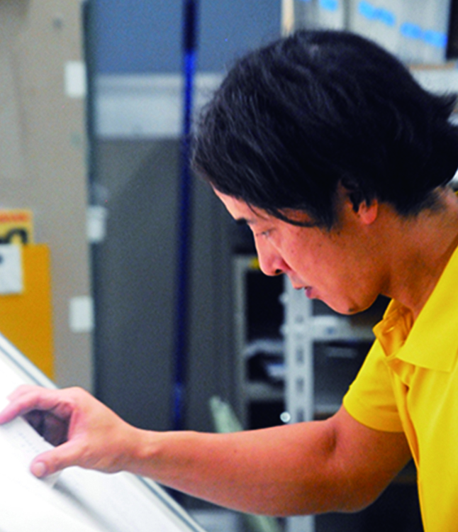 当サイトのプロフェッショナルページにも掲載している、印刷オペレーターの有谷さん!