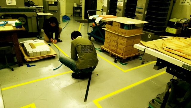 こんばんは。 工場スタッフの松本です! 先日は工場の床塗りを行いましたが (一部の床のみ..,) とてもいい気分♪ ….で仕事ができています! そして床塗りの次は 『ライン引き』! 今日は、店長みずからライン引きを してくれました (手前が店長) 真面目な性格なので 妥協することなく とってもキレイにラインを引いてくれました!! ラインを引き終わった後の 店長の『ドヤ顔』 私は一生忘れません(´・ω・`)