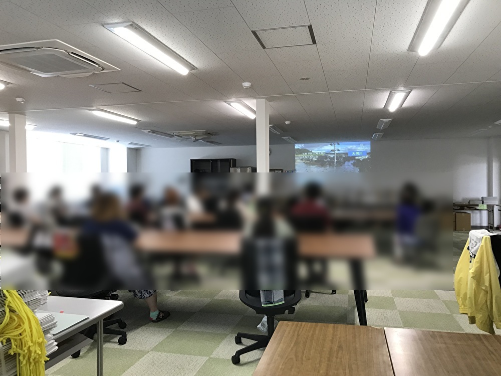 こんにちは!まっつんです ここ数日、熊本でも大雨が続きましたね。弊社の近くにも川がありますのでもしもの時に備えなければなりません。その一環として作業スタッフに向けての勉強会が開かれました。 みなさん水害対策の動画を真剣に視聴しています。